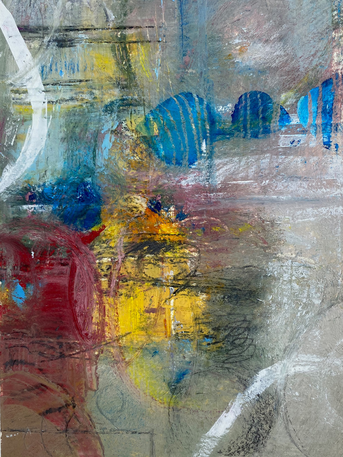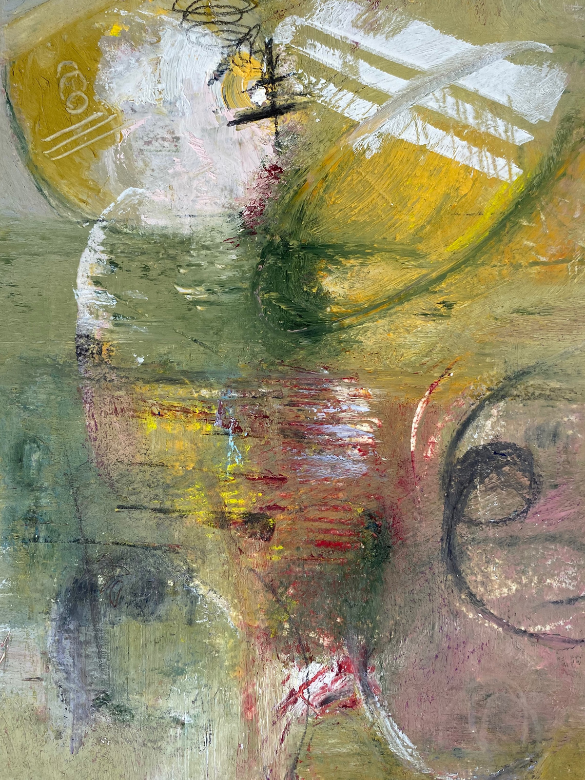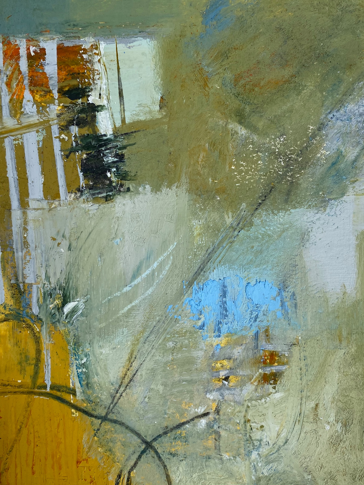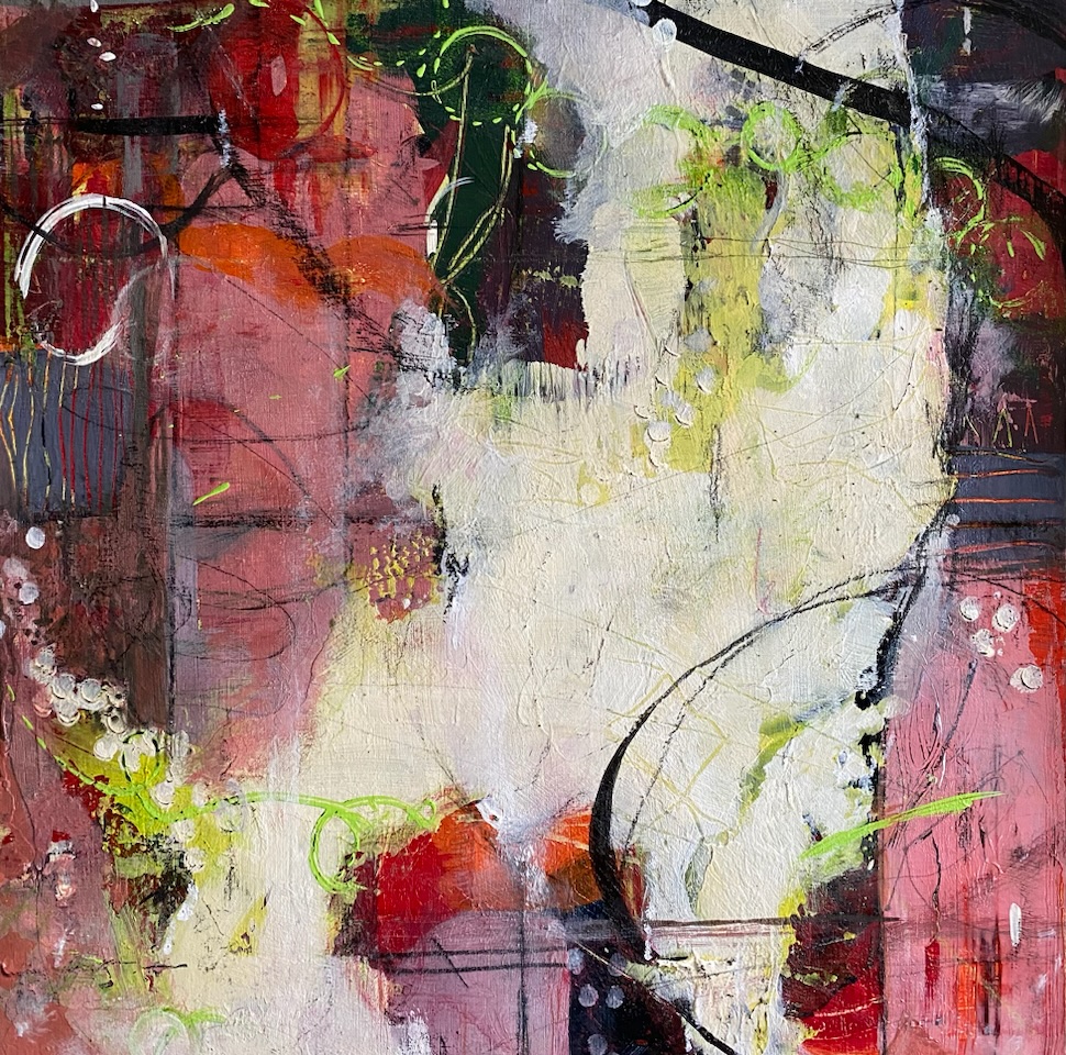 “Time Flies While We’re Having Fun”, Oil and Cold Wax on Cradled Panel, 20”x16”x1.5”, 2020. SOLD. Private Collection