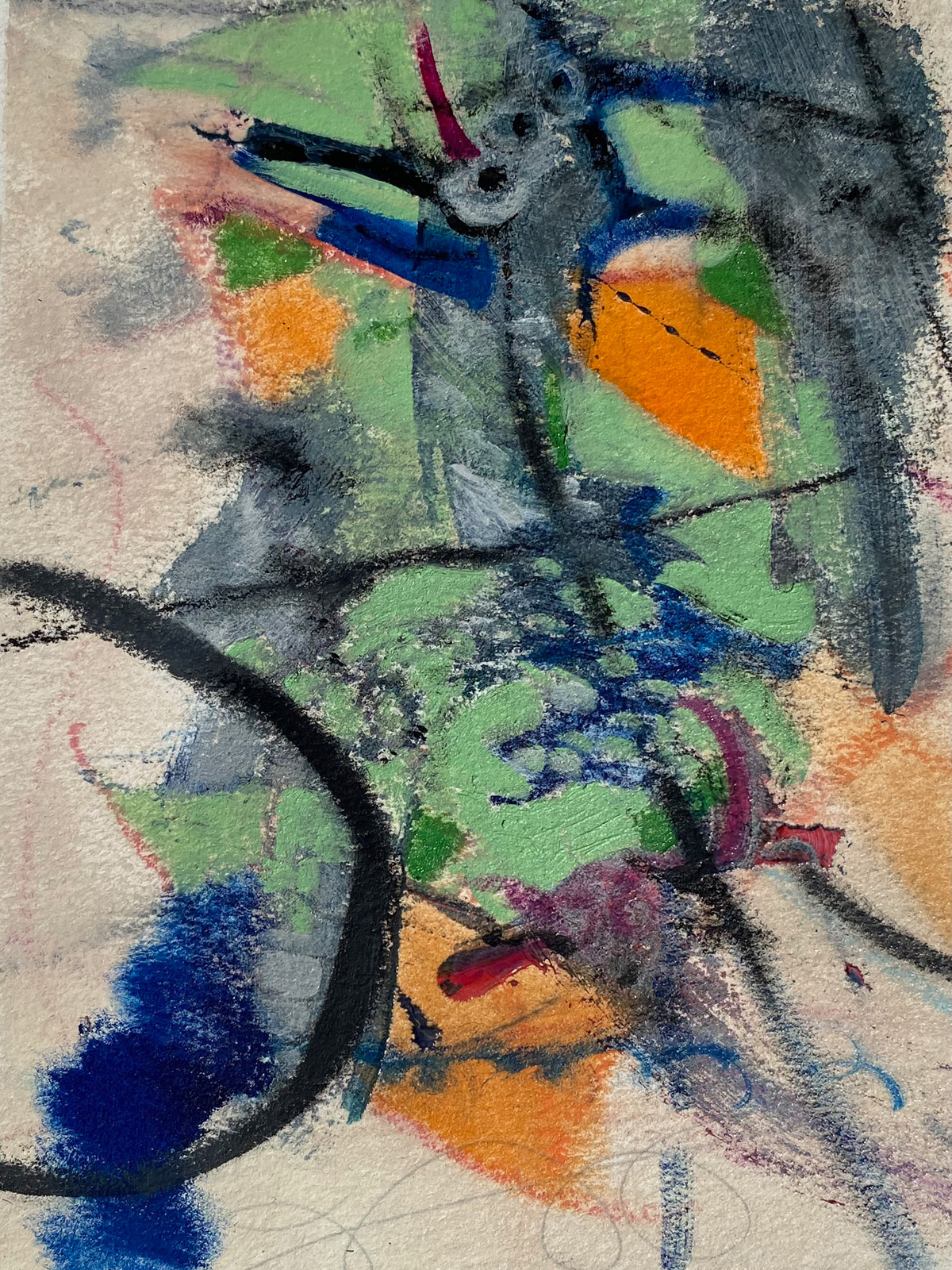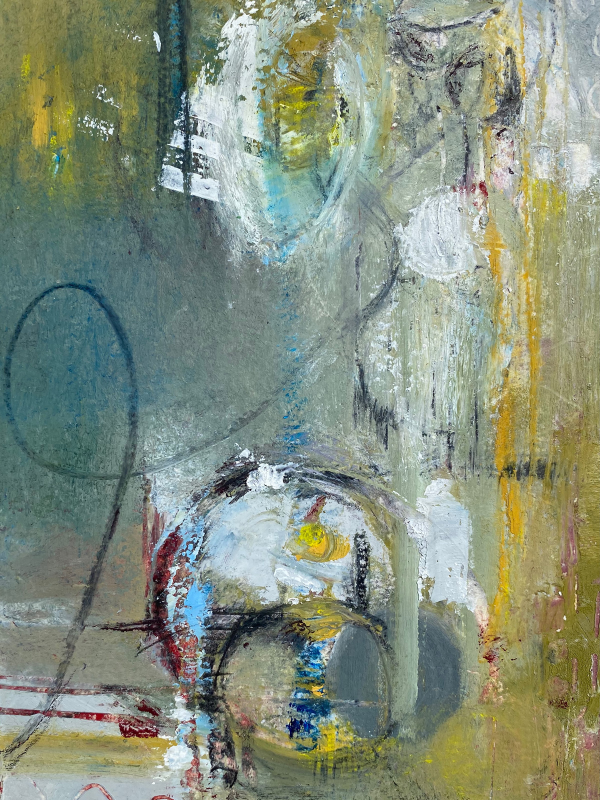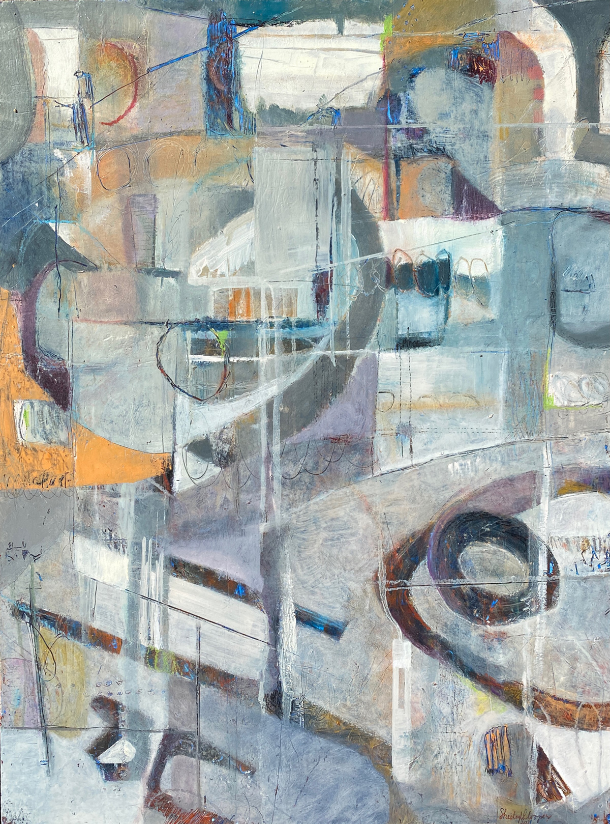 “Time Flies While We’re Having Fun”, Oil and Cold Wax on Cradled Panel, 20”x16”x1.5”, 2020. SOLD. Private Collection