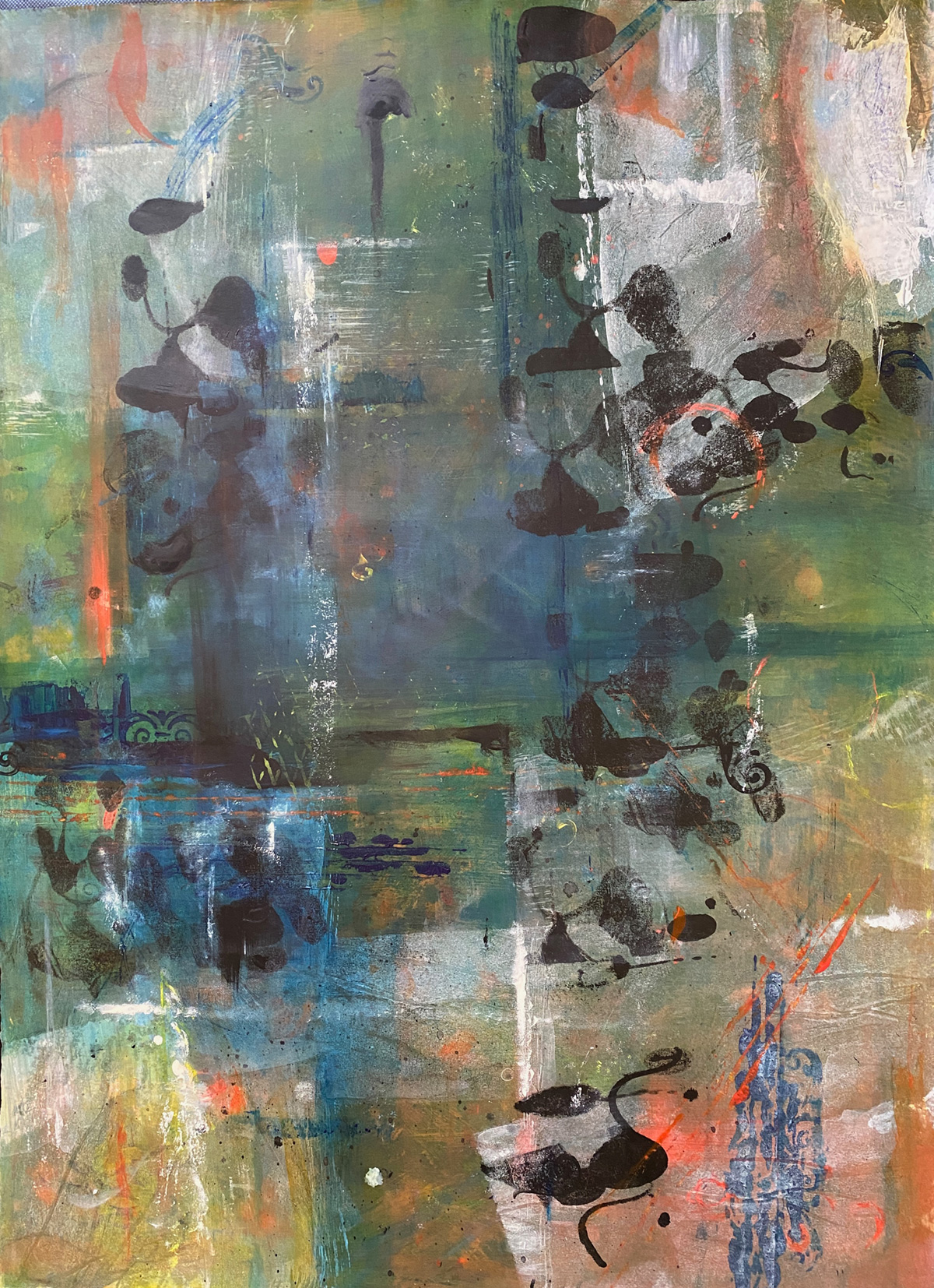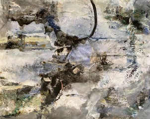“Seepage”, Oil & Cold Wax, Charcoal, Graphite on Arches Paper, 7”x5” unframed, 2020