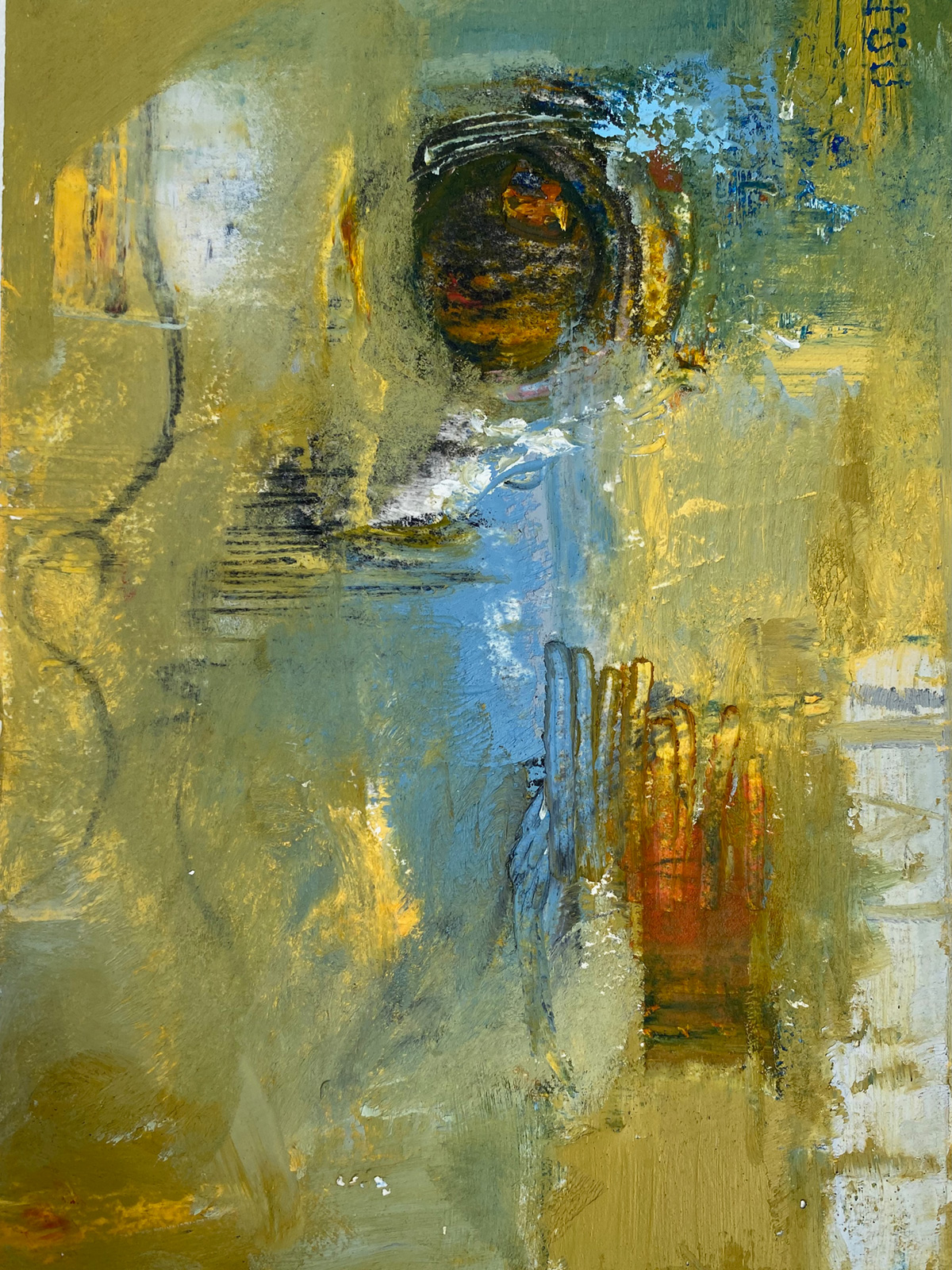 “Filtering the Past With a Soulful Lens”, Oil & Cold Wax on Arches Paper Mounted on Cradled Panel, 12”x9”, 2020. SOLD; Private Collection.