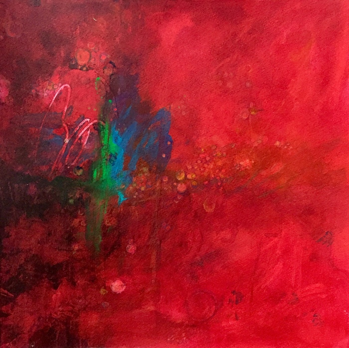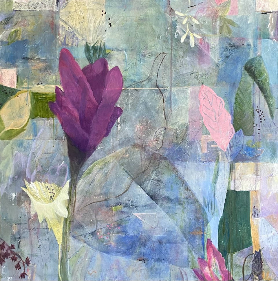 2024, Acrylic and Collage on Wood Panel, 12”x12”.