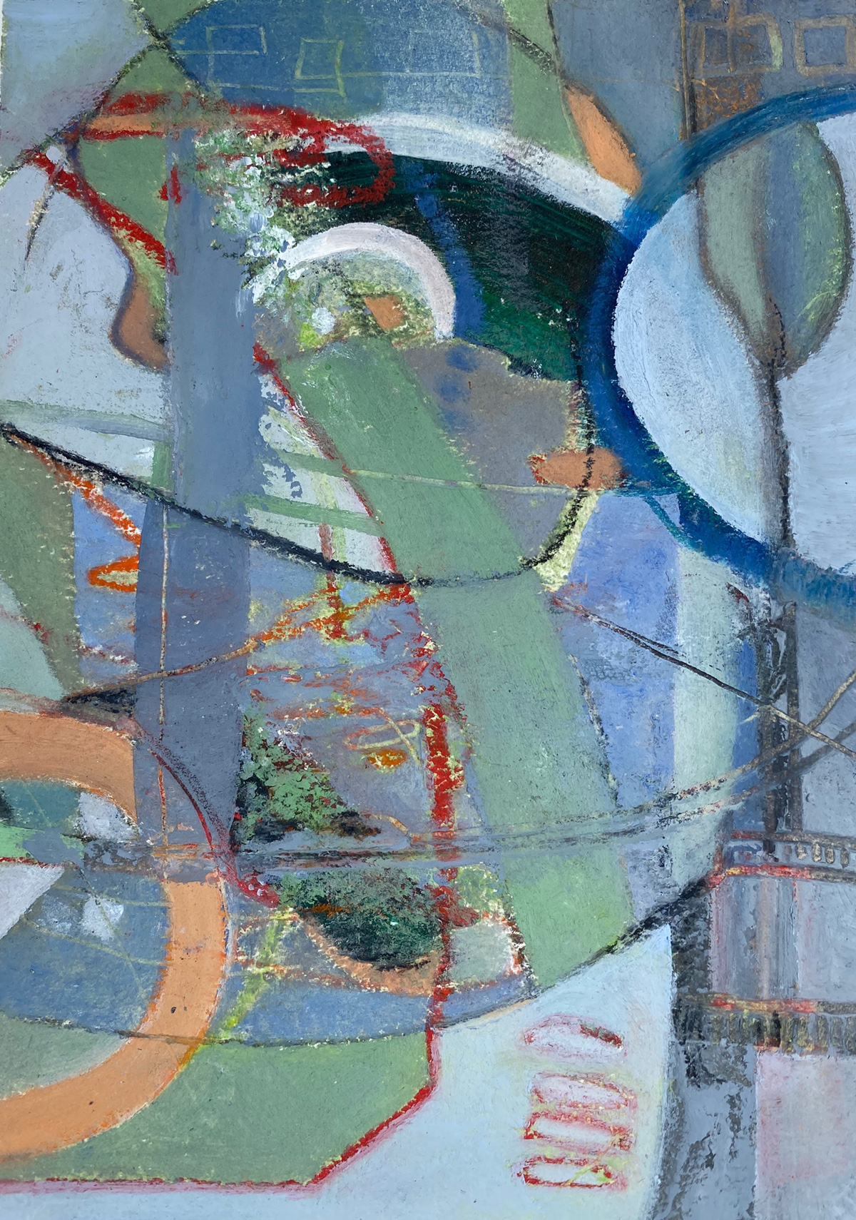 “Leveling the Playing Field”, Oil & Cold Wax, Charcoal, Graphite on Arches Paper, 7”x5” unframed, 2020