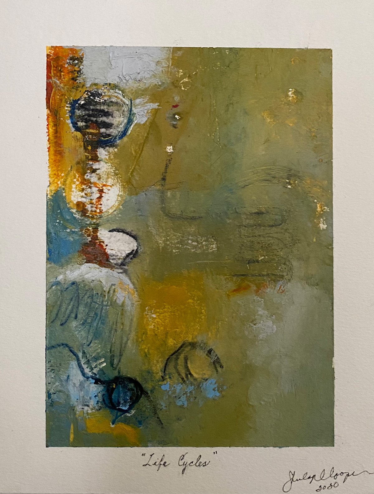 “Life Cycles”, Oil & Cold Wax, Charcoal, Graphite on Arches Paper (7”x5”) Mounted on Cradled Wood Panel (10”x8”), 2020