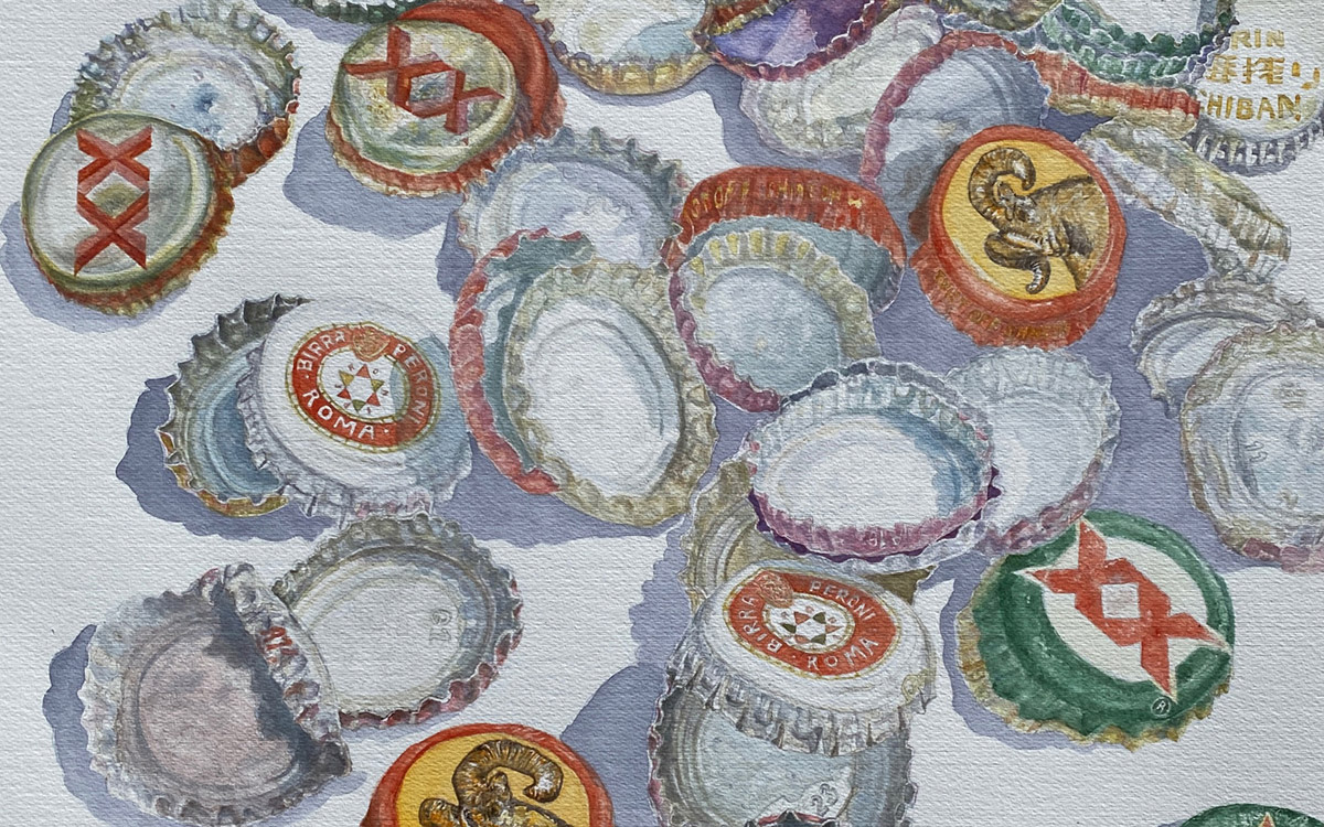 “Flattening My ’20 Curves”, Transparent Watercolor on Paper, 15”x11”, 2021